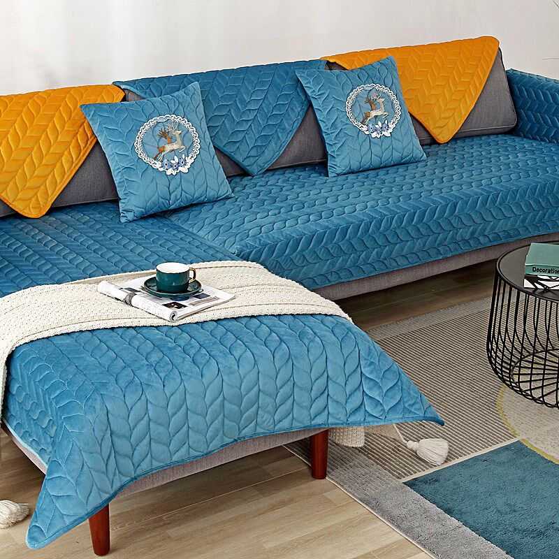 Sofa cushion plush thickened non-slip solid color full cover sofa cushion simple modern combination package four seasons universal