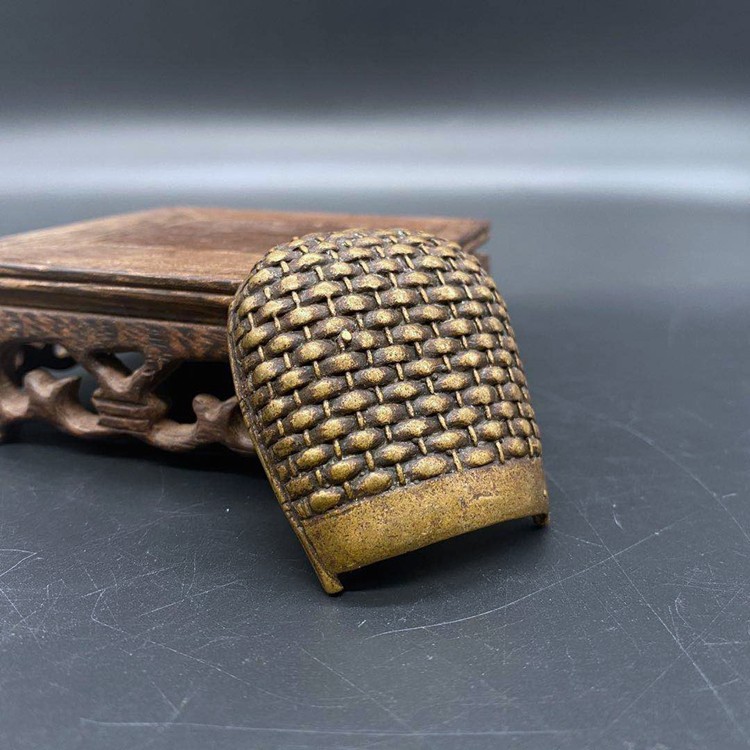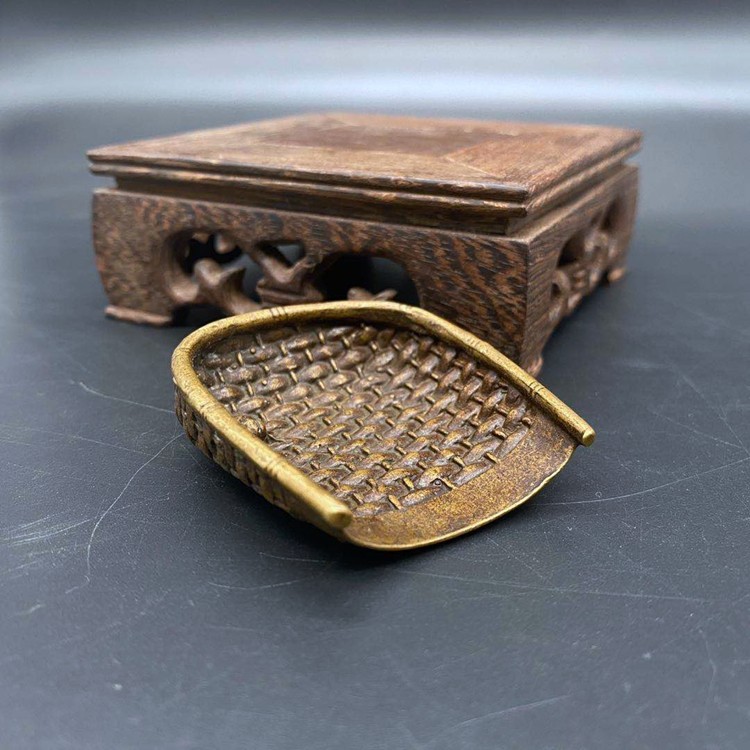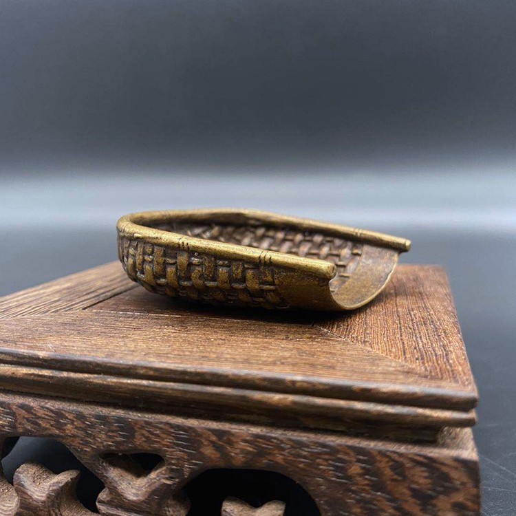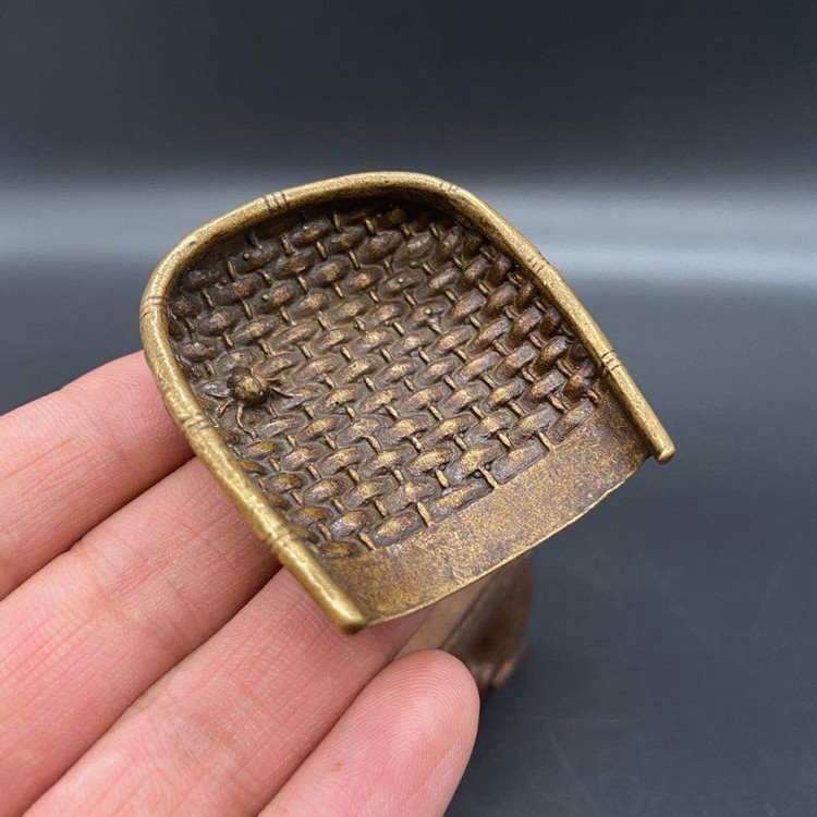 Vintage brass solid small dustpan brass bamboo basket small basket ornament table top small bronze love tea pet handle piece