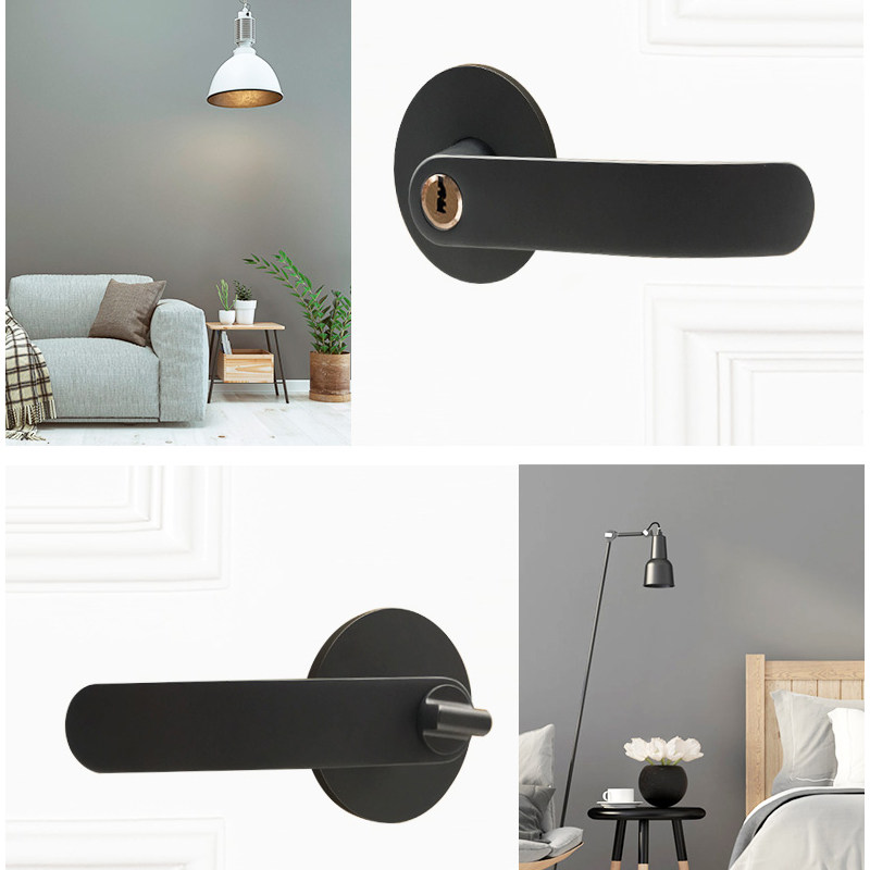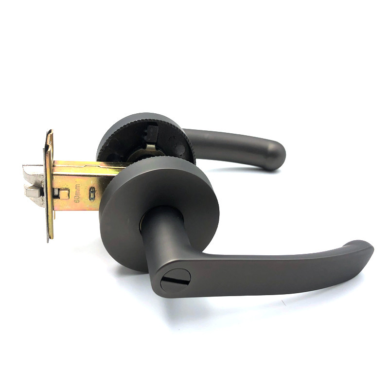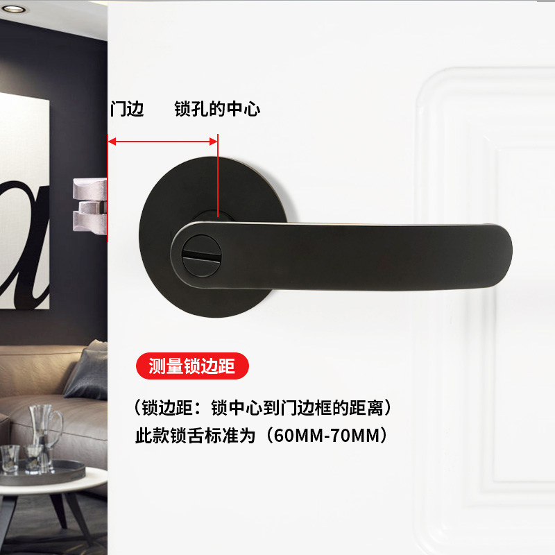Bedroom black gray single tongue hotel powder room channel round mute three-bar door lock universal factory direct sales