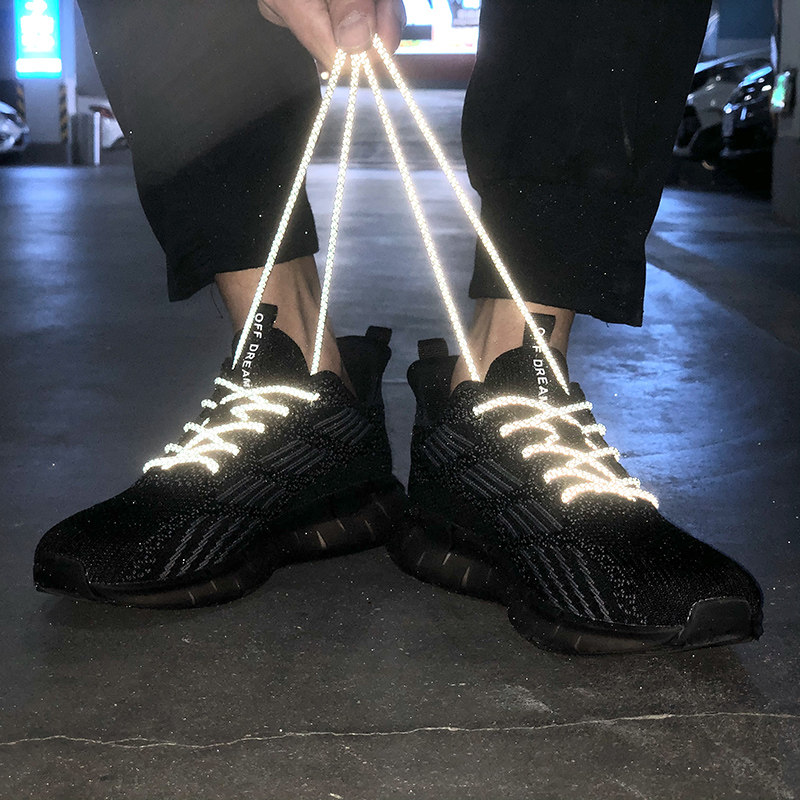 Men's shoes spring 2022 new flying woven mesh shoes black cloth shoes pilot work soft bottom coconut breathable reflective students