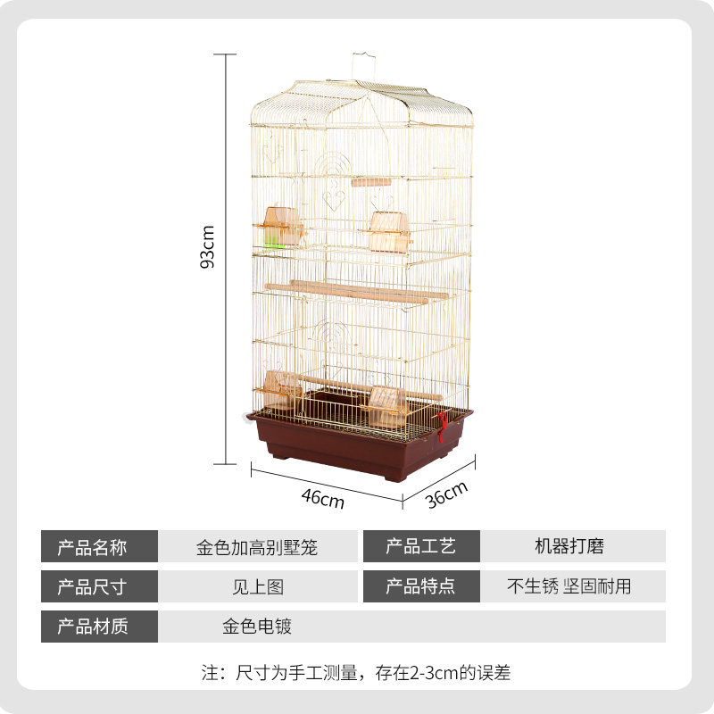 Gold heightened villa cage standard golden heightened villa cage set one (swing grass nest) gold heightened villa cage set two (9-layer ladder cuttlefish bone string) gold heightened villa cage set three (bath box 850g feeder fan pedal) gold heightened villa cage set four (grass nest swing cuttlefish bone string 9-layer ladder breeding box)