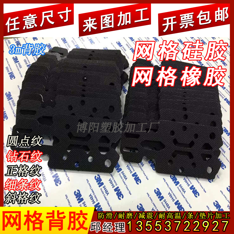 Black mesh grid grain silicone plate Self-adhesive silica gel cushion anti-slip with 3M rubber plate machined backrubber silicone rubber strip