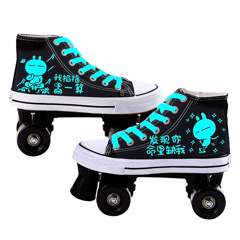 Canvas skates Adult double row roller roller skates Four wheel double row roller skates men's and women's fluorescent glitter roller skates