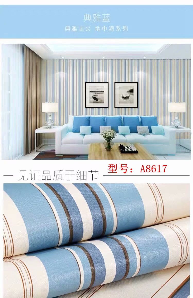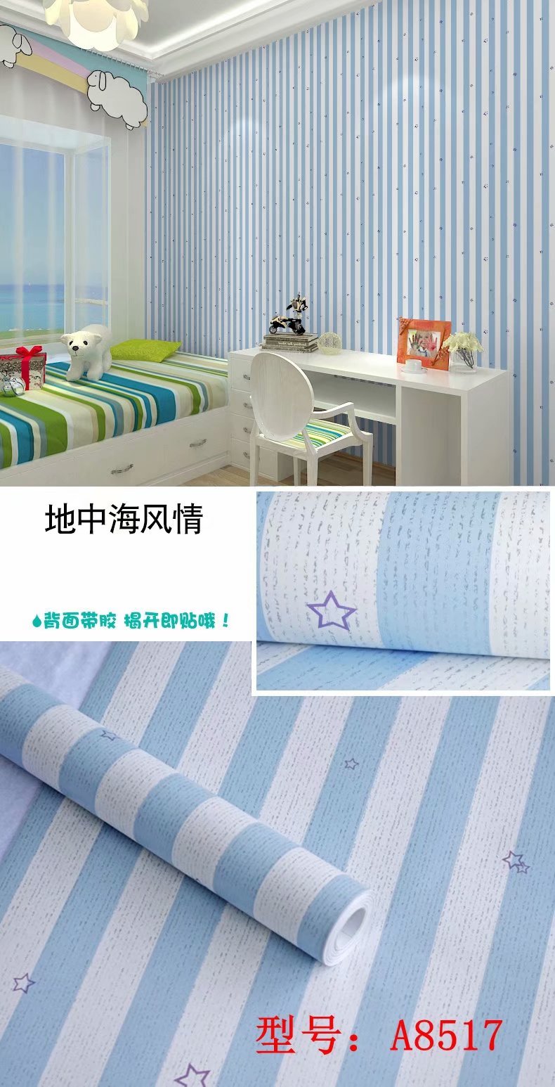 1 2m wide self-adhesive wallpaper waterproof thickened plain stripe wall stickers bedroom living room self-adhesive wallpaper color film