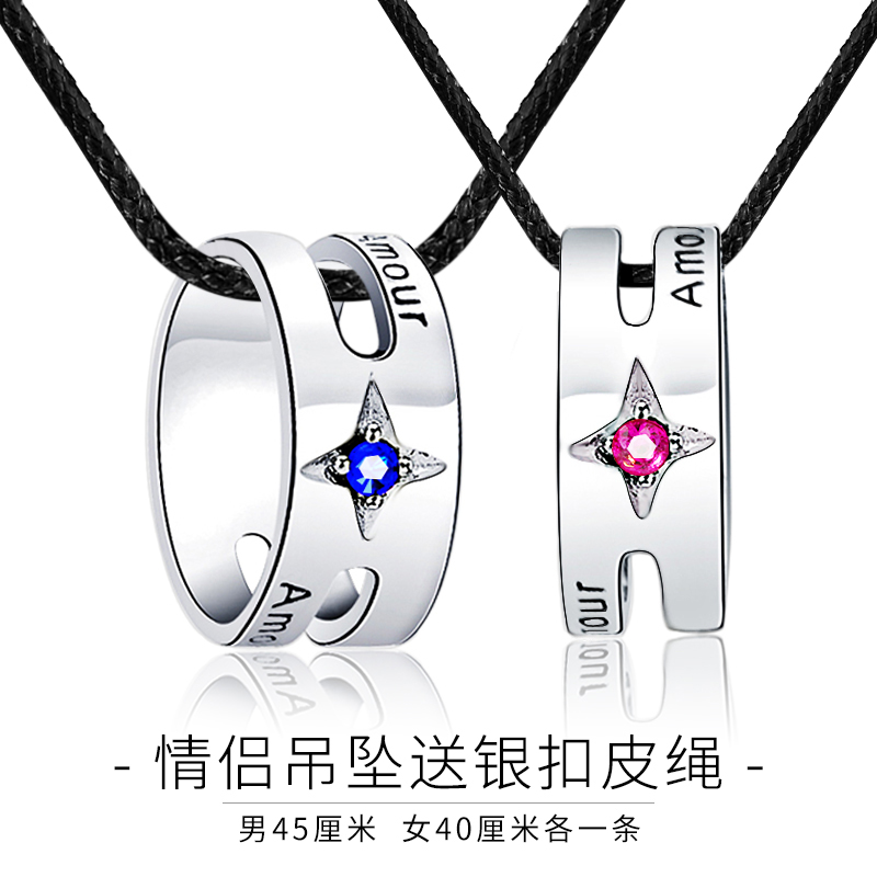 Couple necklace single (silver necklace female) couple necklace single male (silver necklace) couple necklace pair (silver necklace) pair of wax black rope section (deep sea with fish necklace) (silver necklace) transfer ring couple items