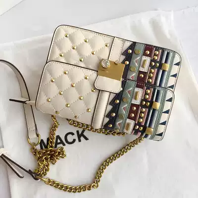 Hong Kong MackJakors leather women's bag all-match Lingge ethnic style embroidery shoulder oblique cross chain small bag
