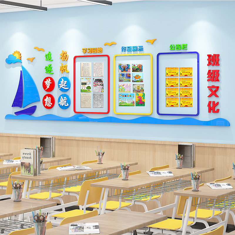 Class Culture Wall Sticker Classroom Placement 3d Solid Elementary School Work Display Bar Study Corner High School Wall Decoration