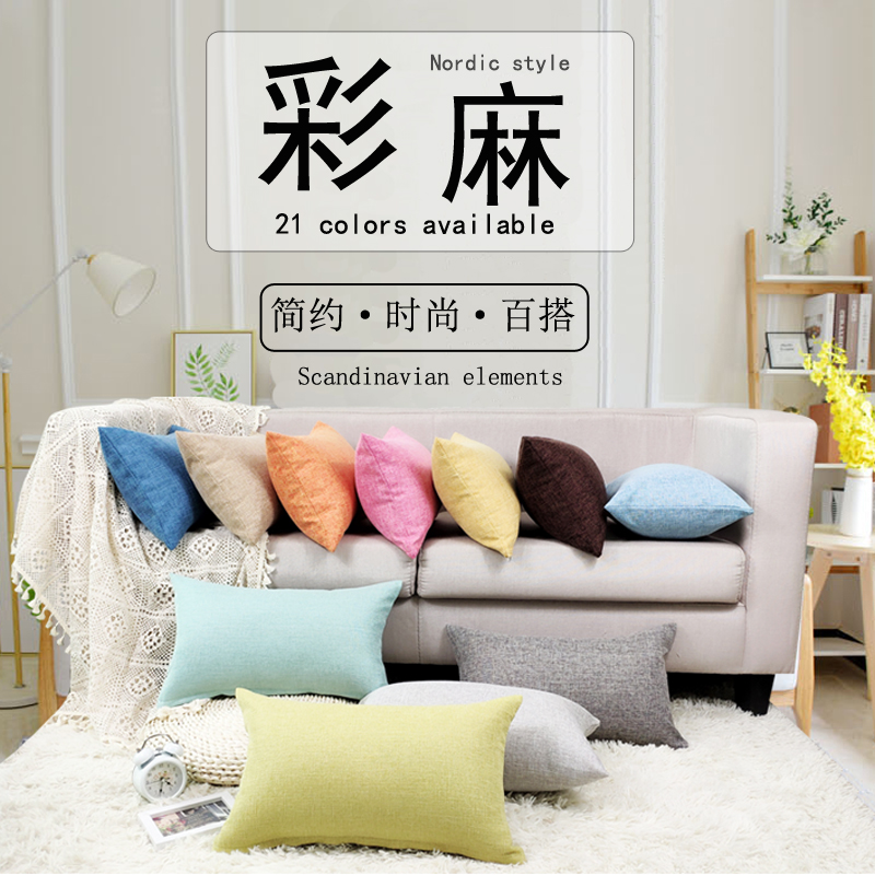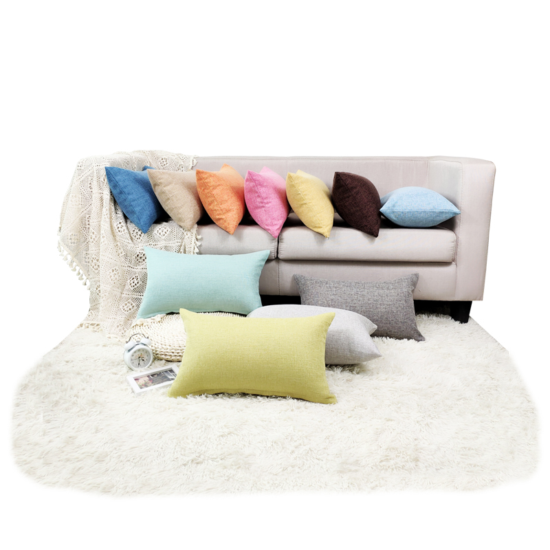 Solid Color Cotton Linen Pillow Summer Sofa Cushion Cover Living Room Lumbar Pillow Bedside Back Cushion Custom Rectangle Without Core