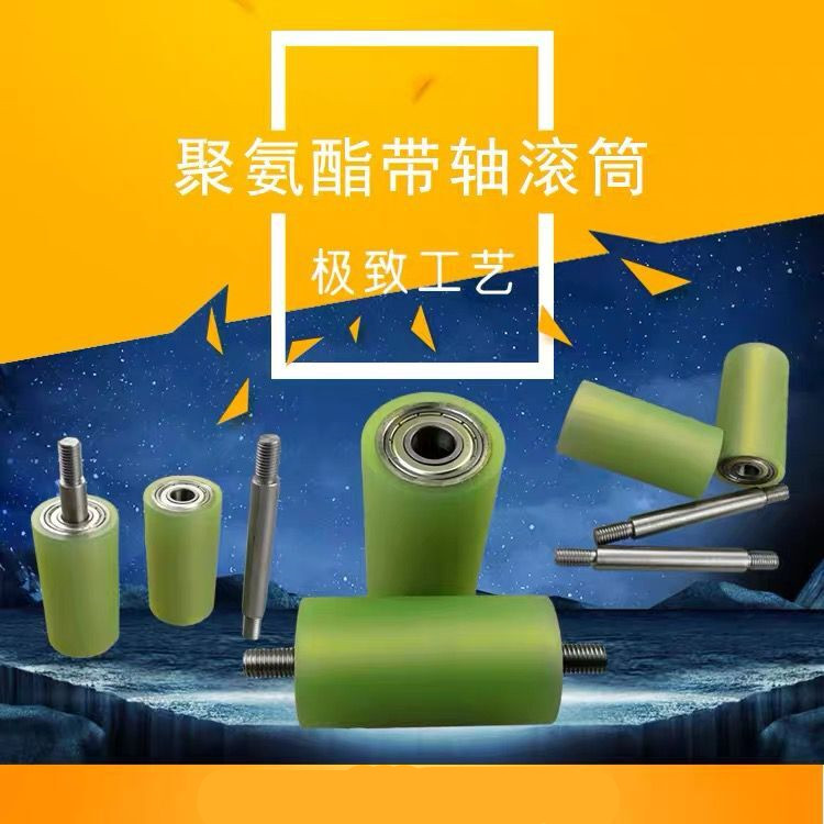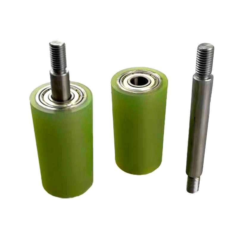 Double bearing rubber wheel with shaft core polyurethane pack adhesive roller drum roller bearing PU feeding wheel driven wheel press wheel abrasion resistant