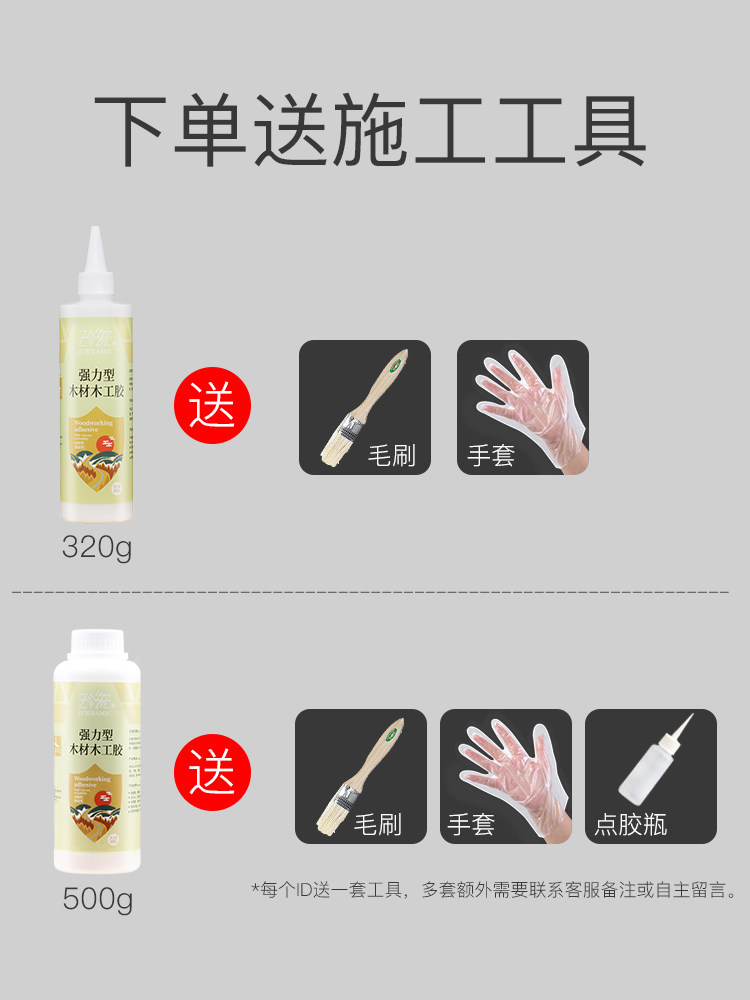 Strong woodworking glue 1 bottle (320g bottle) Strong woodworking glue 2 bottle (320g bottle) Strong woodworking glue 3 bottle (320g bottle) Strong woodworking glue 500g1 bottle Strong woodworking glue 5 bottles (320g bottle) 2 bottles of strong woodworking glue 500g (buy 2 bottles immediately reduce 10 yuan) Strong woodworking glue 100ml experience pack 1 bottle