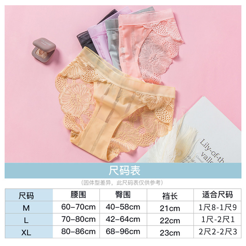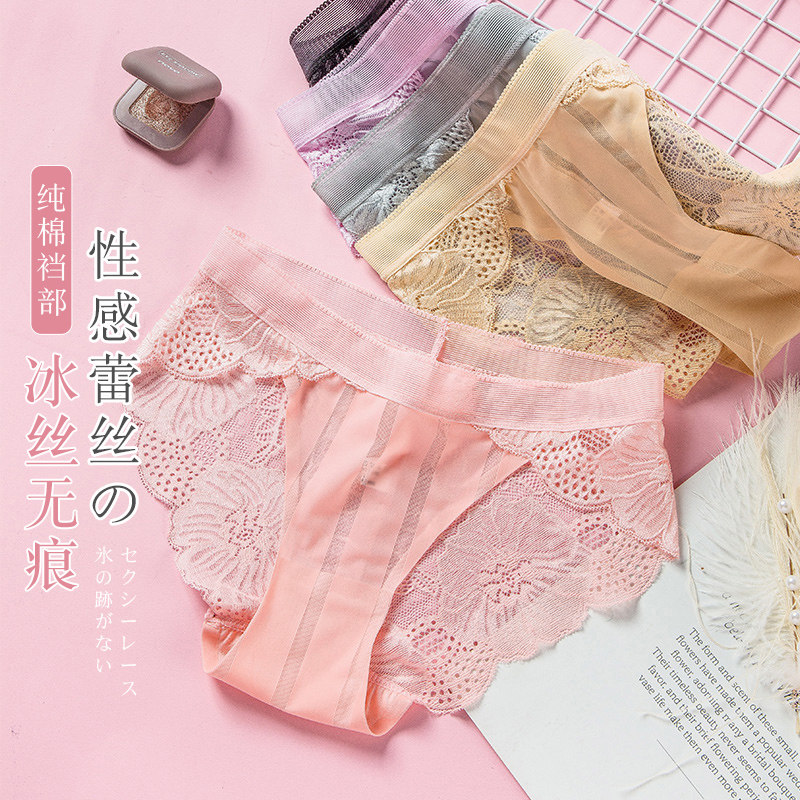 Langsha women's lace panties women's ultra-thin cotton file mid-waist seamless sexy bag hip young girl triangle shorts