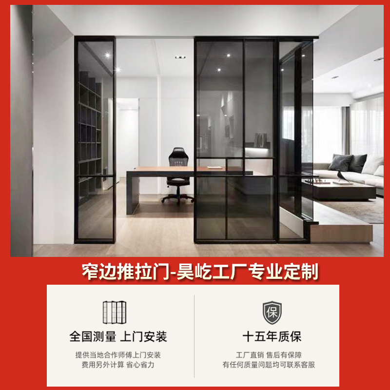 Extreme narrow frame three linked Changhong glass door kitchen balcony partition shut door custom