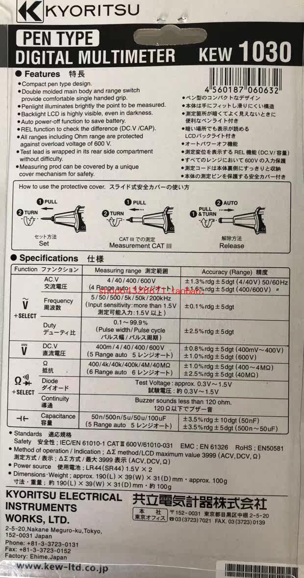 Kyoritsu digital multimeter KEW1030 small portable pen type multimeter