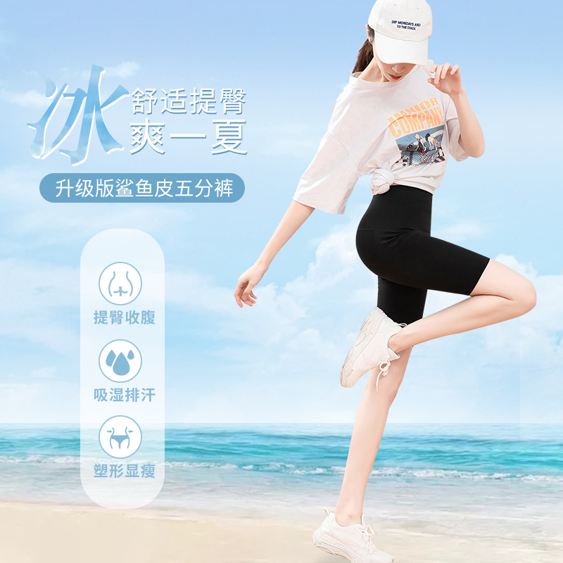 Summer thin leggings women's outerwear three to five points high waist abdomen tight tight sports buttocks safety shorts anti-skid