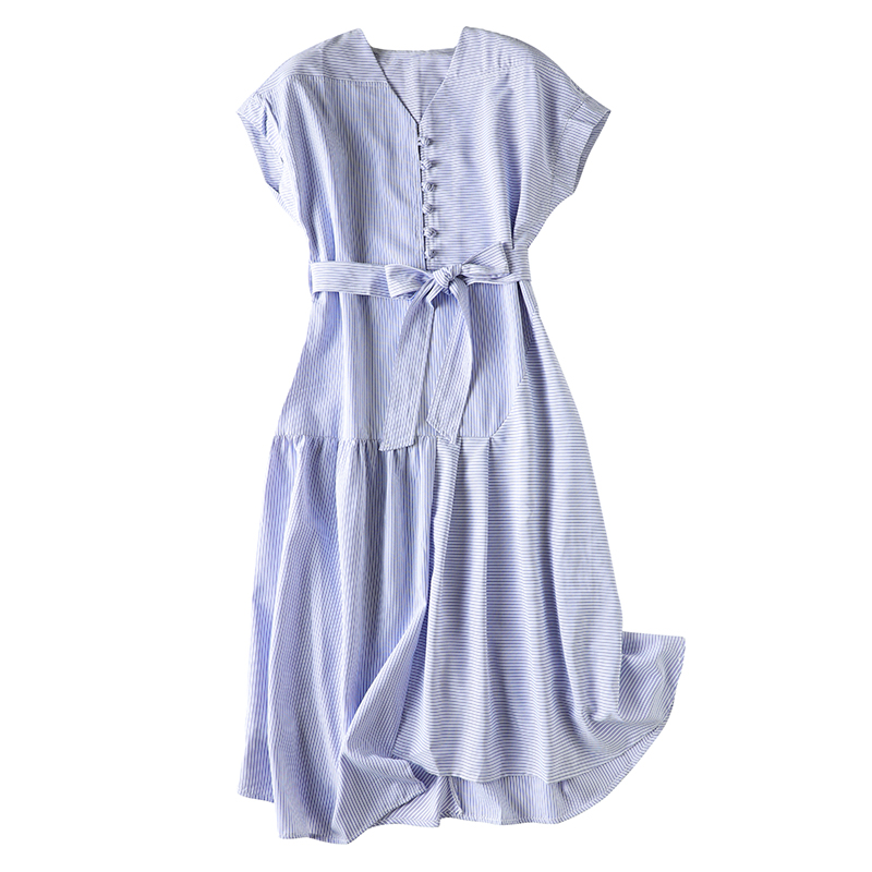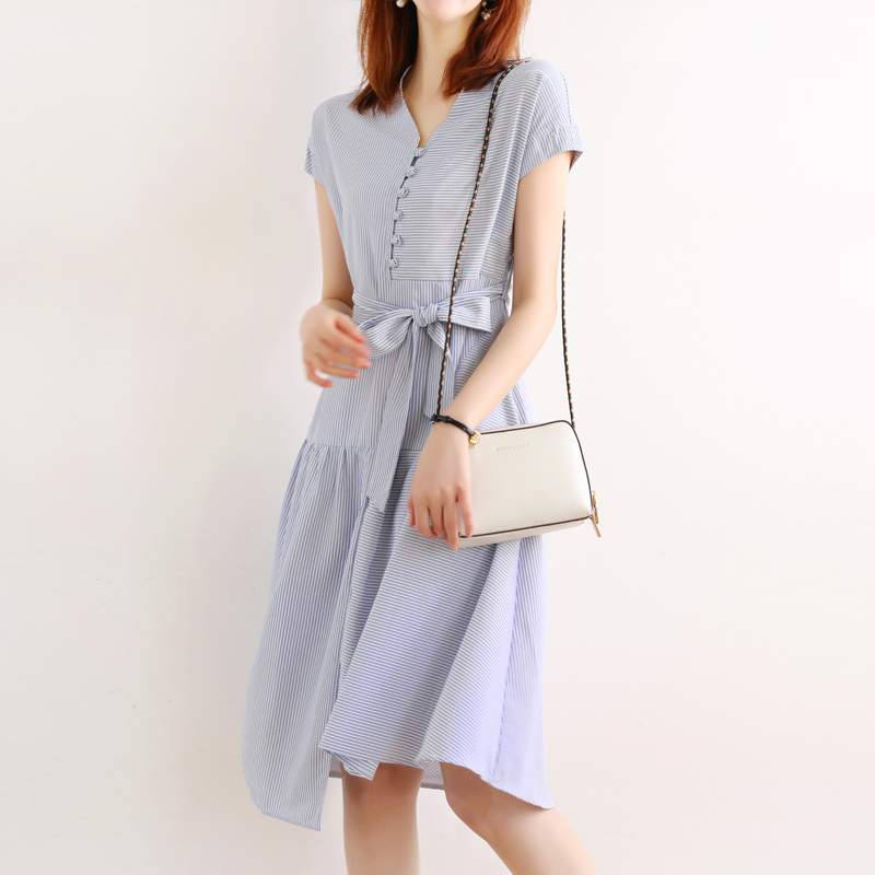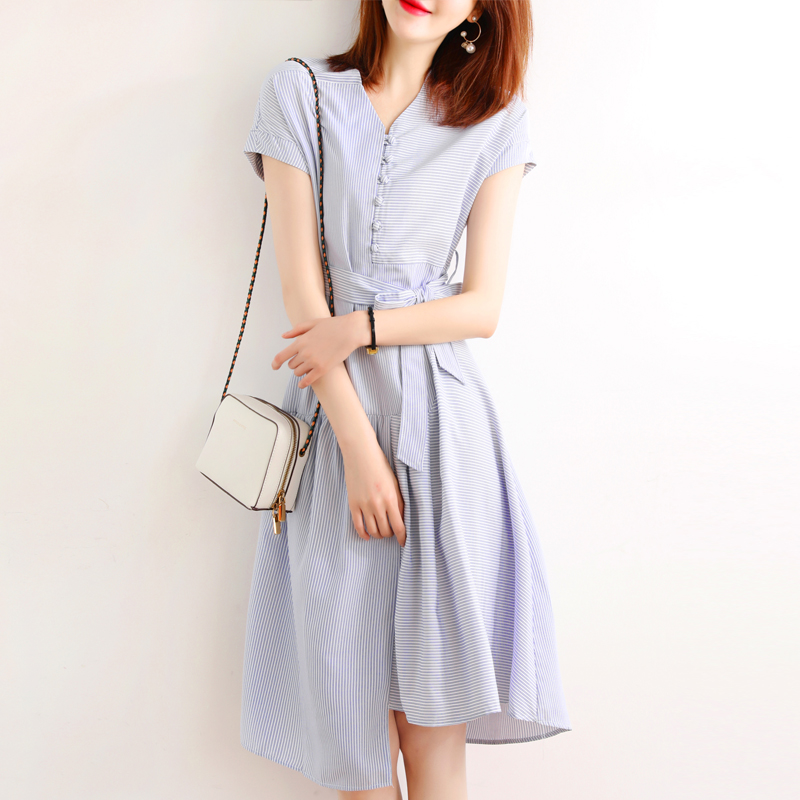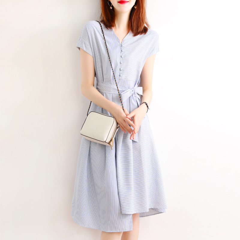 Retro Design Classic Temperament Striped Dress Lady Summer 2020 New slim irregular short sleeve A-word dress