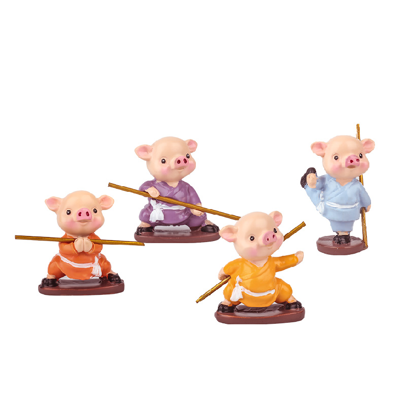 Four small monks Kung Fu Kung-fu Little Piggy Auspicious Fruit Fragrant Lavender with small pig auspicious fruit and fragrant lavender