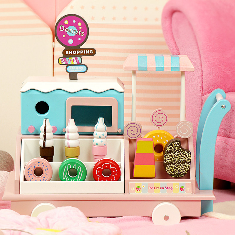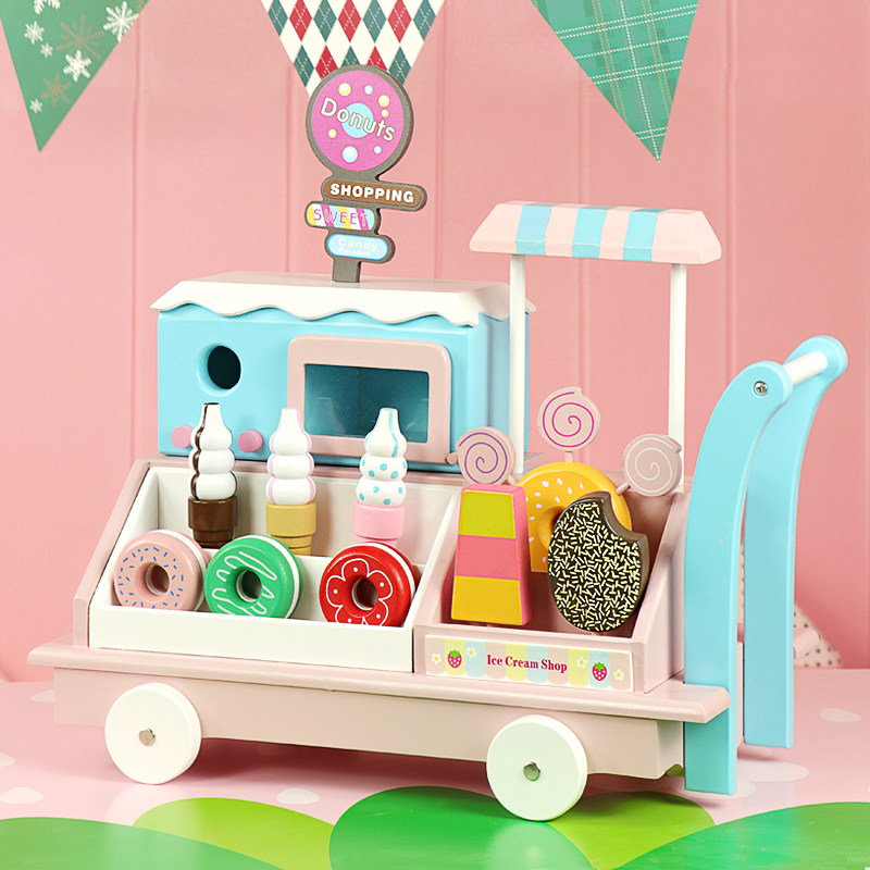 Wooden children's home wine ice cream car toy girl simulation small trolley Candy car ice cream ice cream truck
