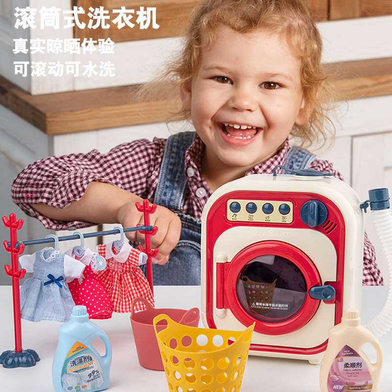 Drum washing machine (can add water to rotate drainage sound and light) send battery 1 doll drum washing machine (can add water to rotate drainage sound and light) iron set (add doll 2