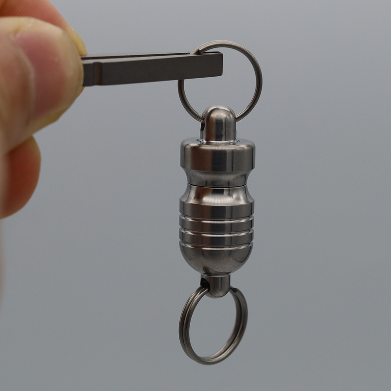Neodymium-iron-boron magnetic suction hanging buckle titanium alloy clutch-type double-section detachable strong magnetic fast hanging key hanging pendant EDC tool