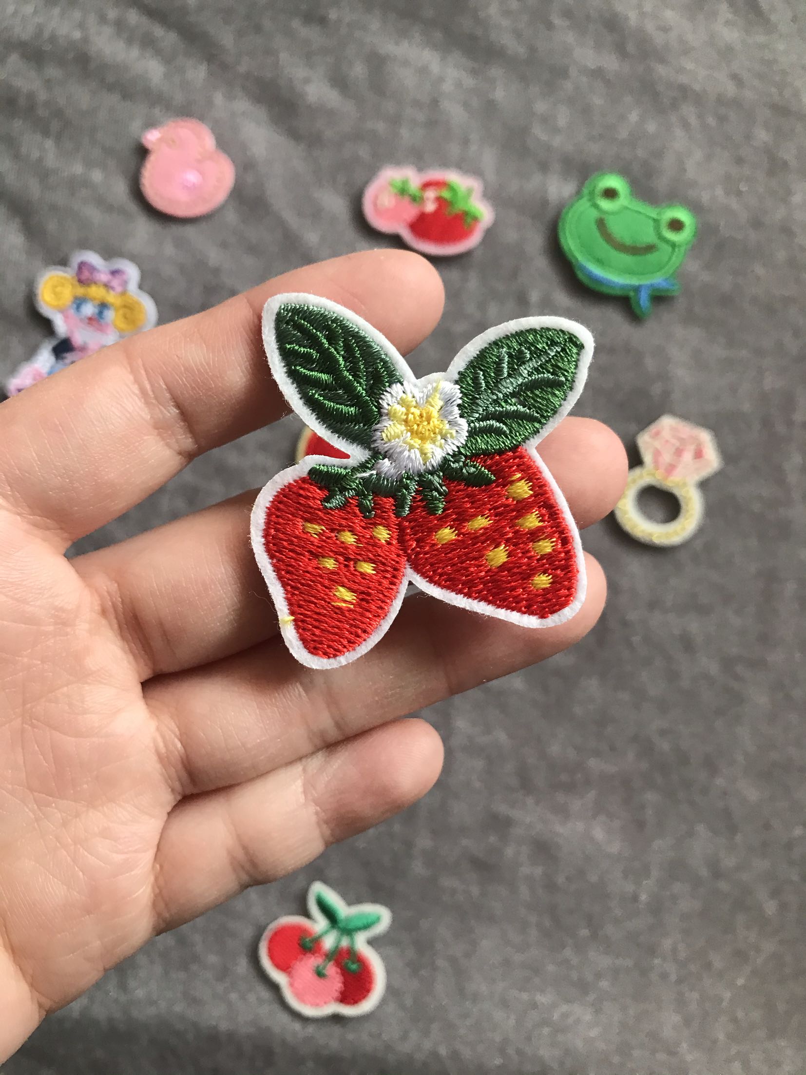 Export to Japan cute elements machine embroidered cloth stickers hole stickers strawberry little girl cherry cake flower, etc.