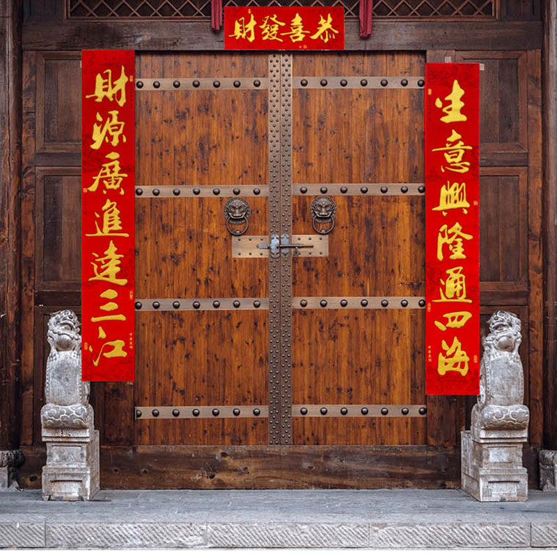 Opening couplet high-grade flannel self-adhesive New Year Spring Festival couplet company store relocation Decoration business is booming 4 meters 3 door couplets