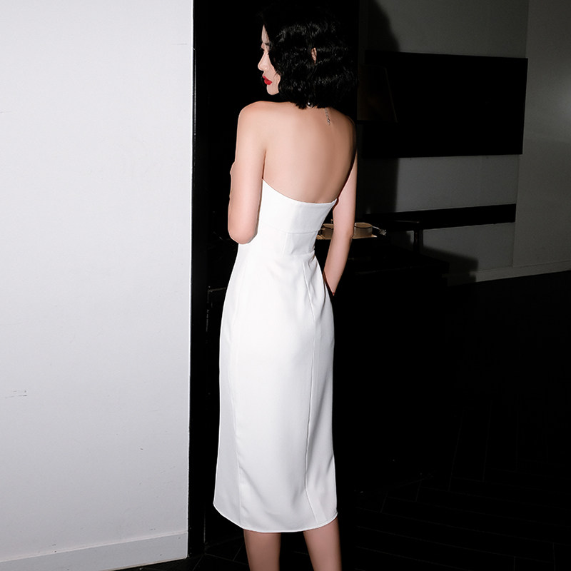 White little evening dress skirt usually can wear 2020 new banquet ladies temperament simple and generous dress female