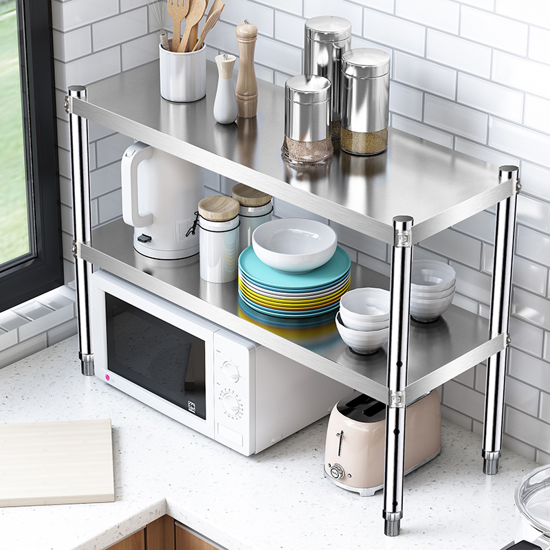 Double stainless steel rack Kitchen stainless steel shelf 2-layer table 2-layer countertop storage microwave oven 2-layer rack
