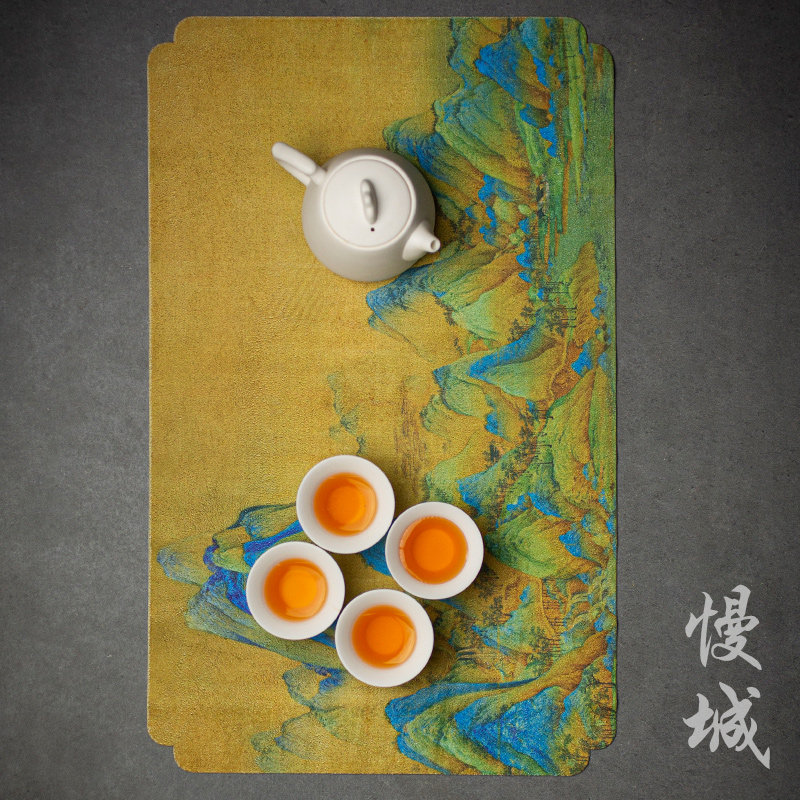 Deer Leather Suede Dry Foam Mat Colored Drawing Suction Tea Mat Waterproof Tea Mat Chinese Wind Tea Flag Zen Velvet Tea Road Accessories