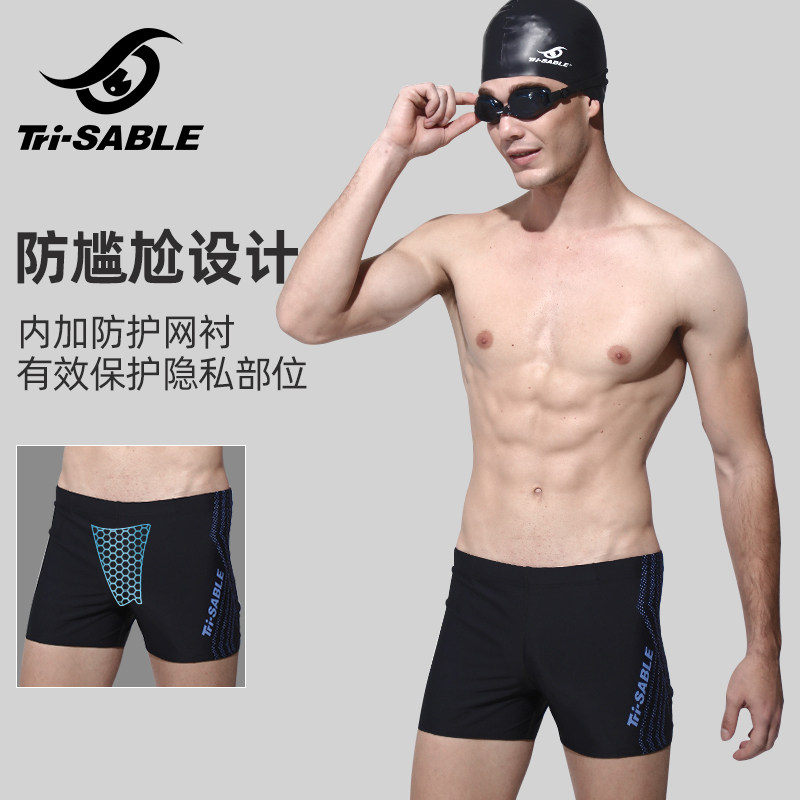 Sable swimming trunks men's anti-embarrassment high elastic quick-drying comfortable professional sexy training men's swimsuit boxer swimming trunks