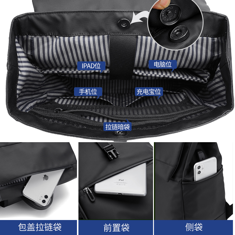 Zipper pocket, mobile phone bag, laminated zipper bag, document space, mesh bag, computer pocket