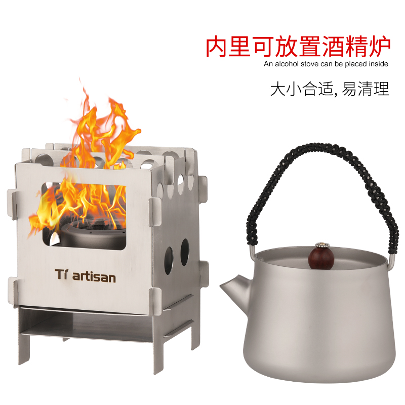 Titanium artisan outdoor stainless steel four-way firewood stove alcohol stove portable stove field card-type stove WS013