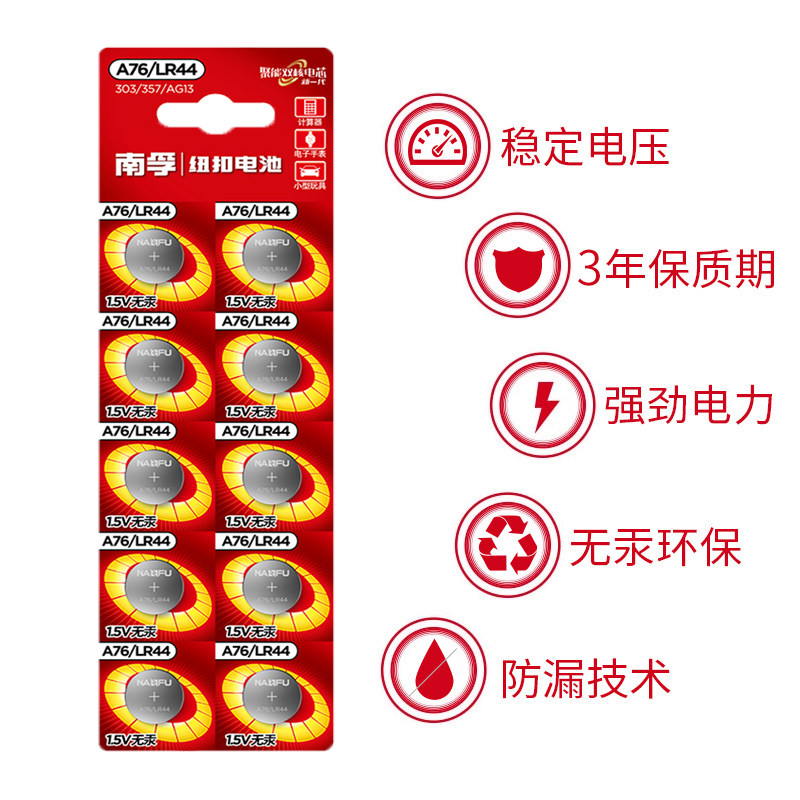Nanfu coin cell battery A76 LR44 AG13 L1154 357a SR44 electronic watch alkaline small battery