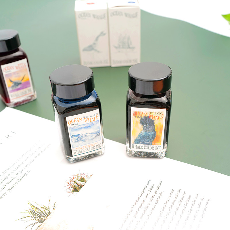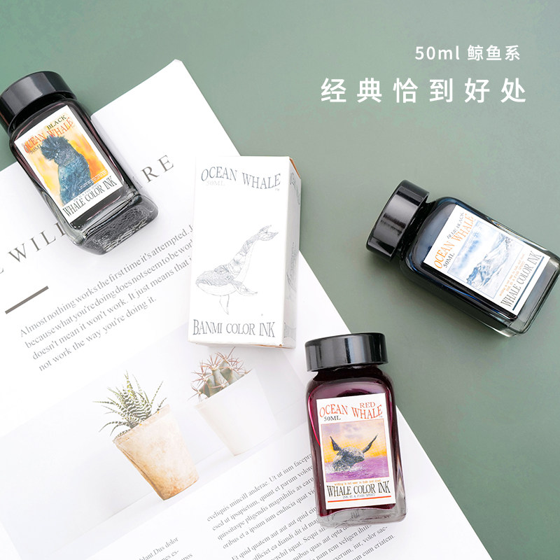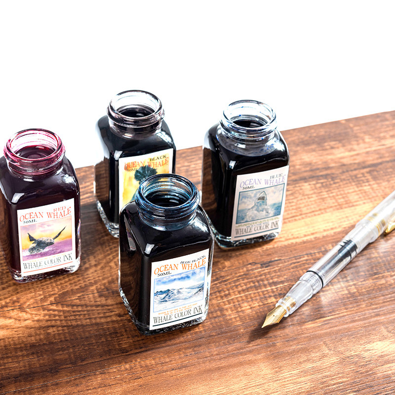(Classic four colors) red black blue blue black next order note color whale ink non-carbon black ink blue pure blue red non-blocking pen pen student bottle 50ml