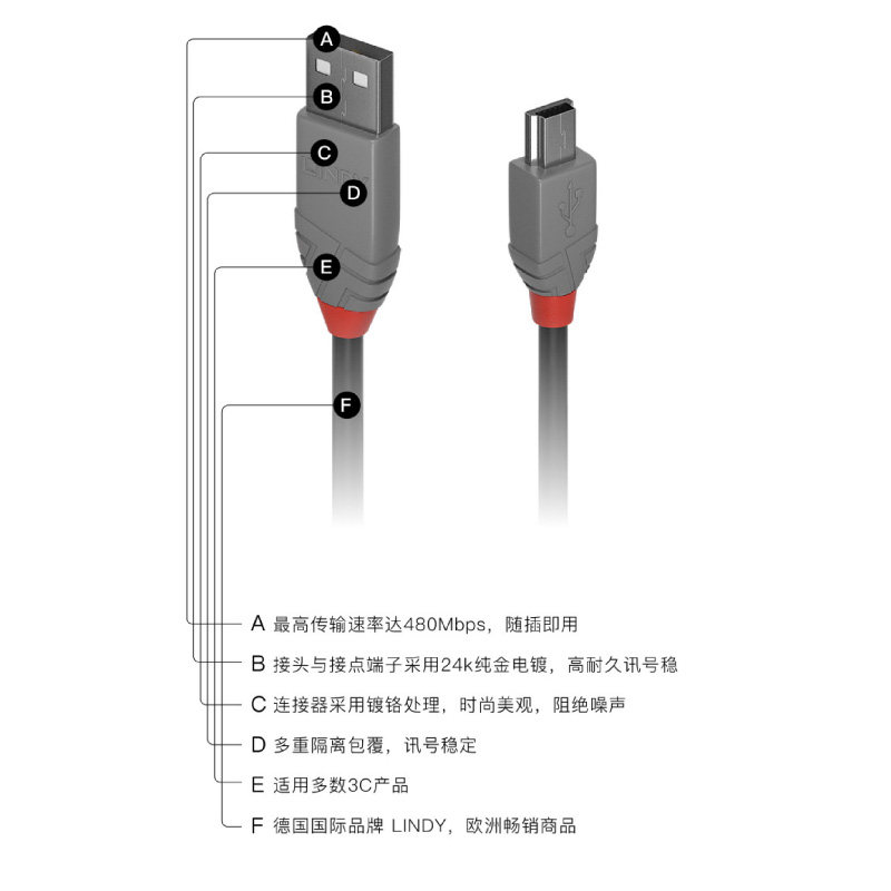 German LINDY Anthra series Micro-B Android universal data line Xiaomi Huawei charging connection line