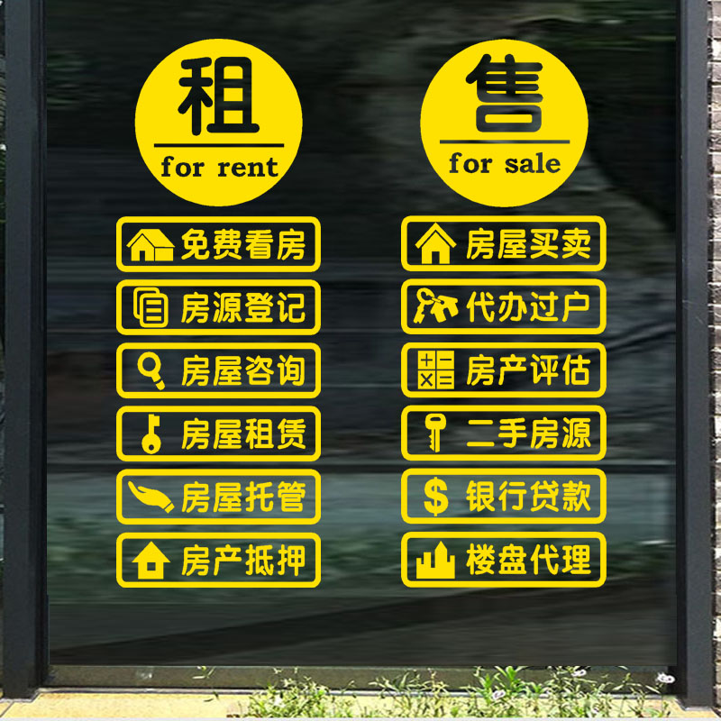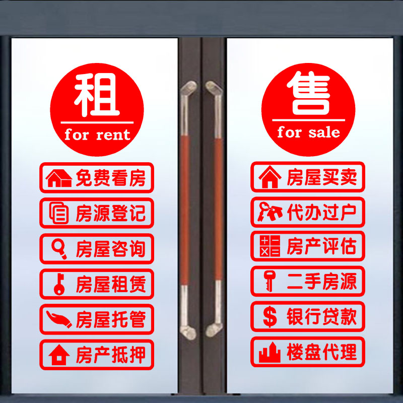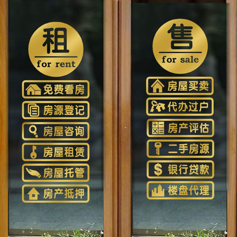 Real estate intermediary glass door sticker for sale of second-hand housing sales company housing advertising wall decoration