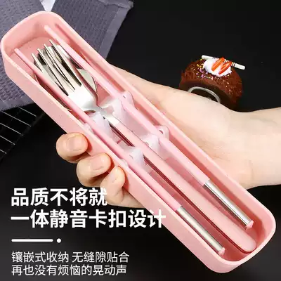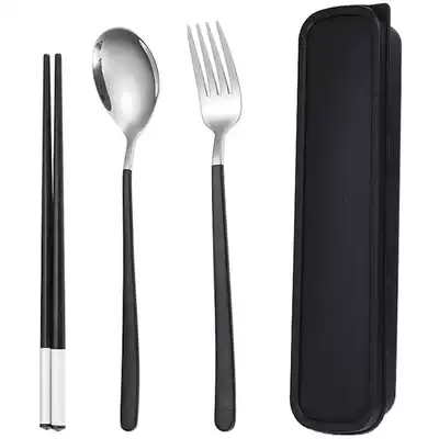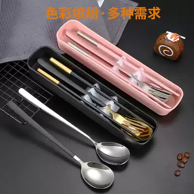 Chopsticks Spoon Set Stainless Steel 304 Household Tableware Box Portable Students and Children Single Pack Three Piece Set Storage