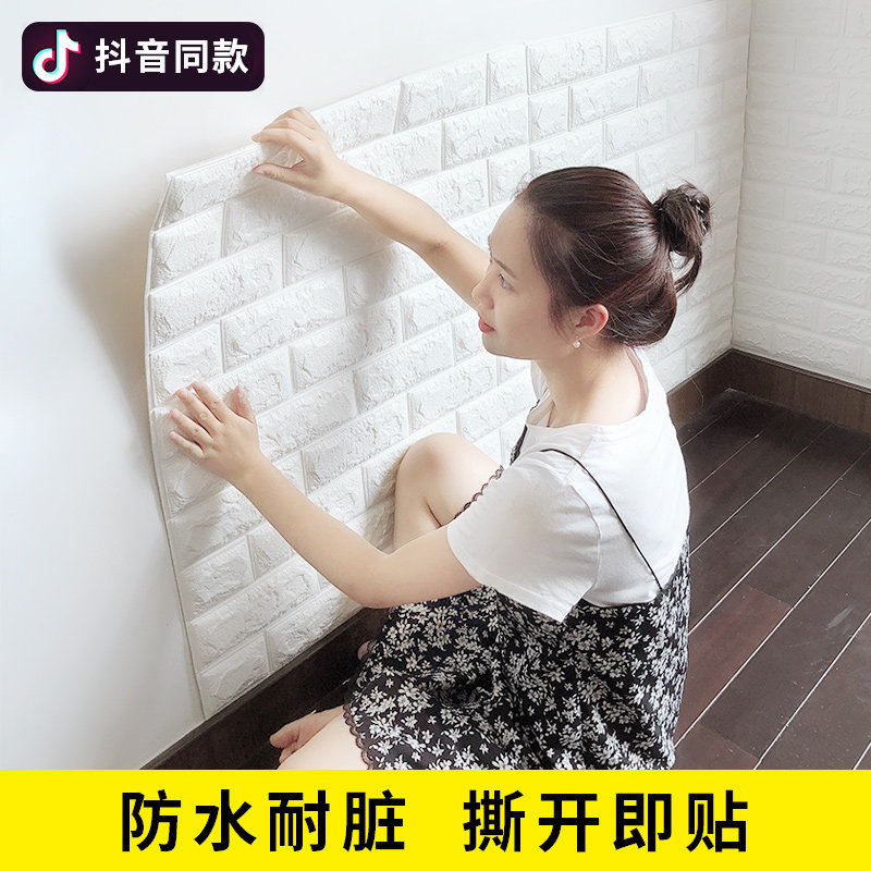 Wallpaper self - adhesive 3D stereo wall stick bedroom warm decoration background wallpaper foam waterproof wall wall stick