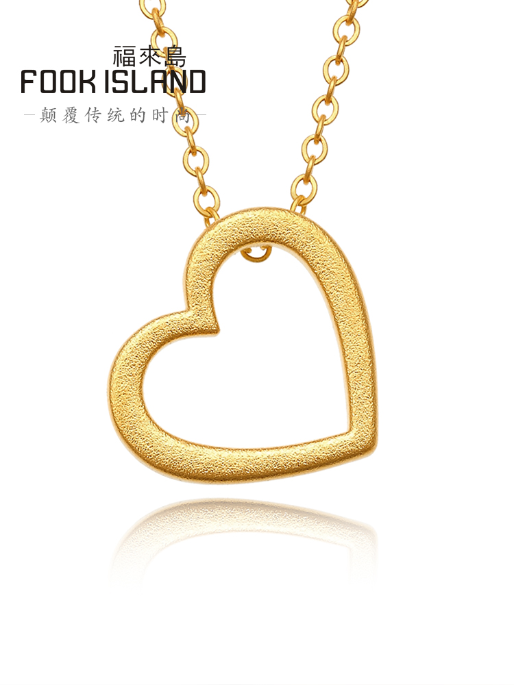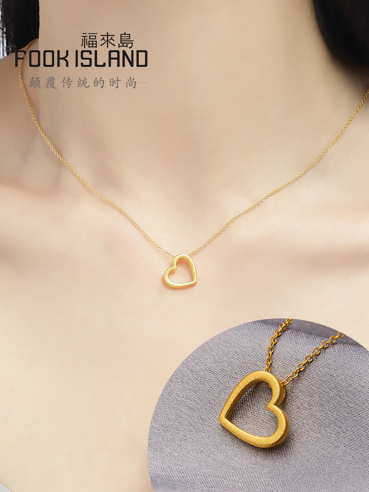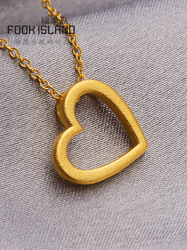 Fulai Island gold pendant pure gold 999 hollow love ancient method gold pendant 3D hard gold simple all-match necklace female