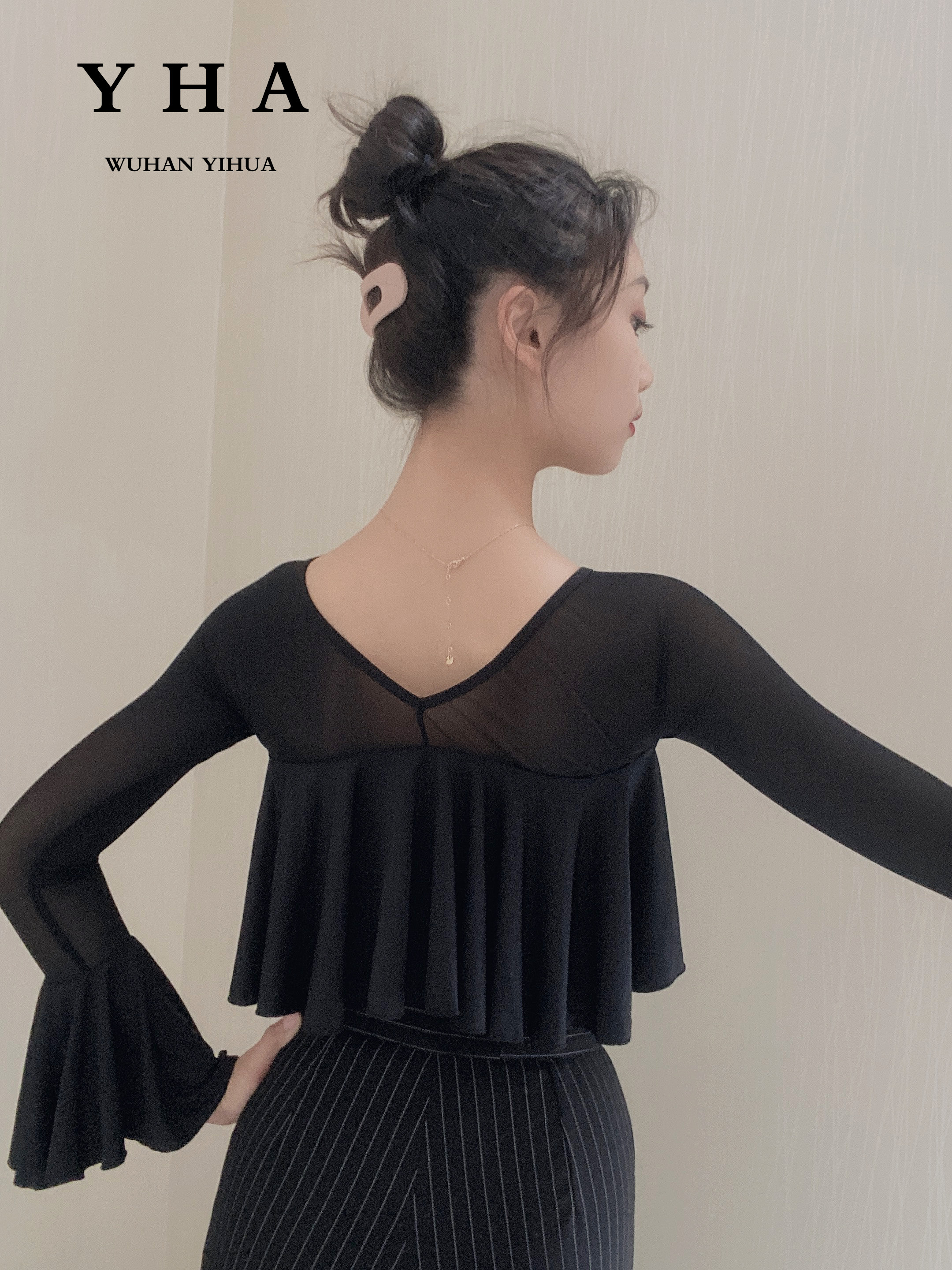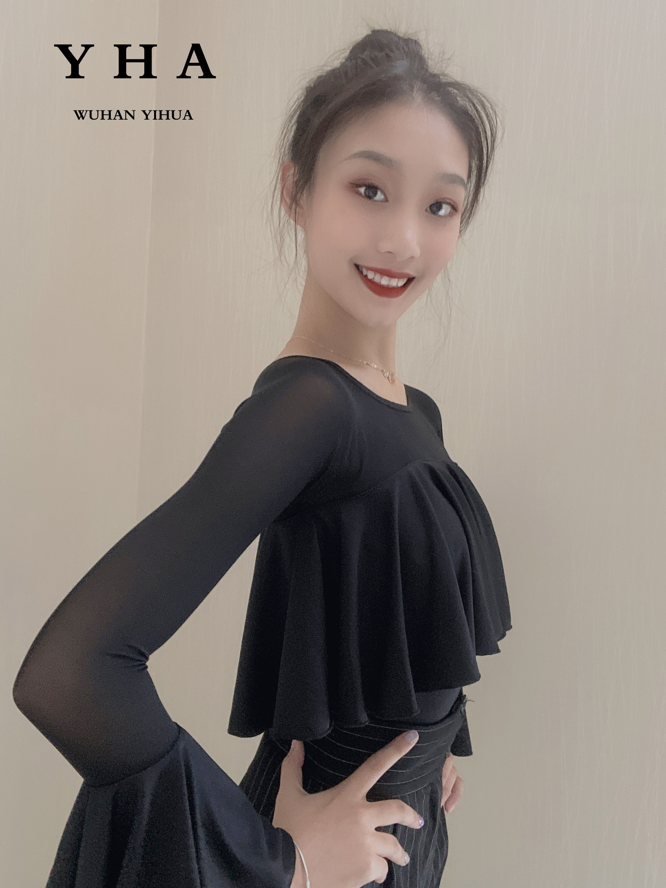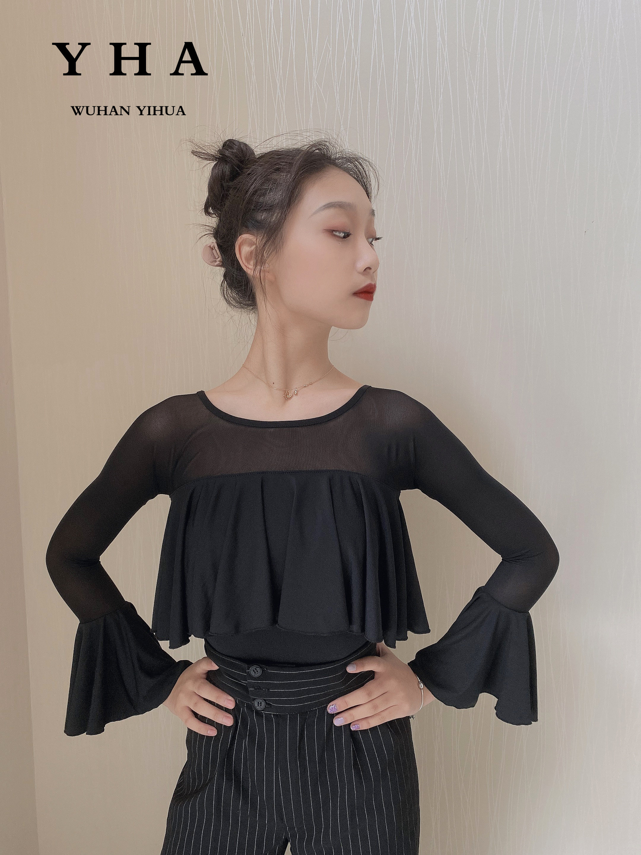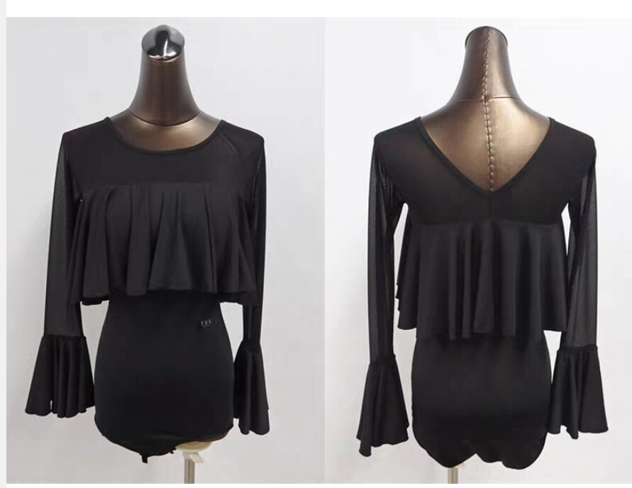 YHA Yihua Professional Morden Dance Dance Practice Suit Female Net Yarn Integrated Sleeve Dance Suit National Standard Dance Performance Costume-Taobao