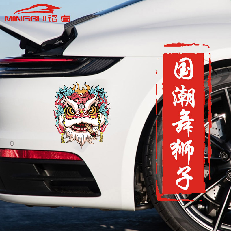 National tide lion car stickers Car Chinese wind scar scratches block personality creative motorcycle electric car lion dance stickers