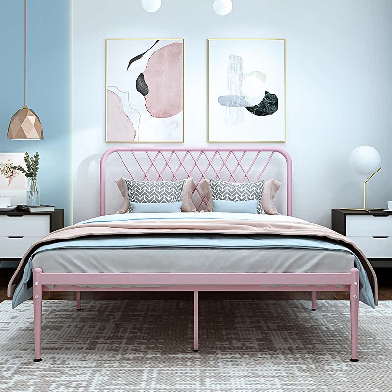 Modern simple Wrought iron double bed Iron frame bed 1 5 meters 1 8 meters Nordic net Red light luxury iron bed frame simple shelf bed