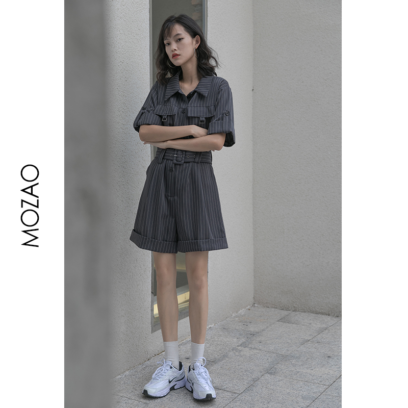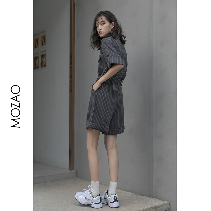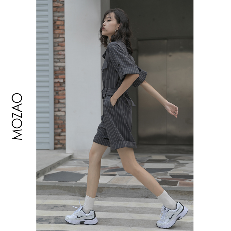 MZ one-piece shorts suit women's summer high waist thin Korean version loose casual waist wide leg overalls shorts tide
