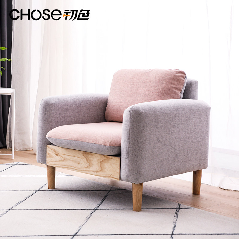 Small family style fabric sofa Nordic modern minimalist living-room bedroom rental room apartment solid wood single double trio
