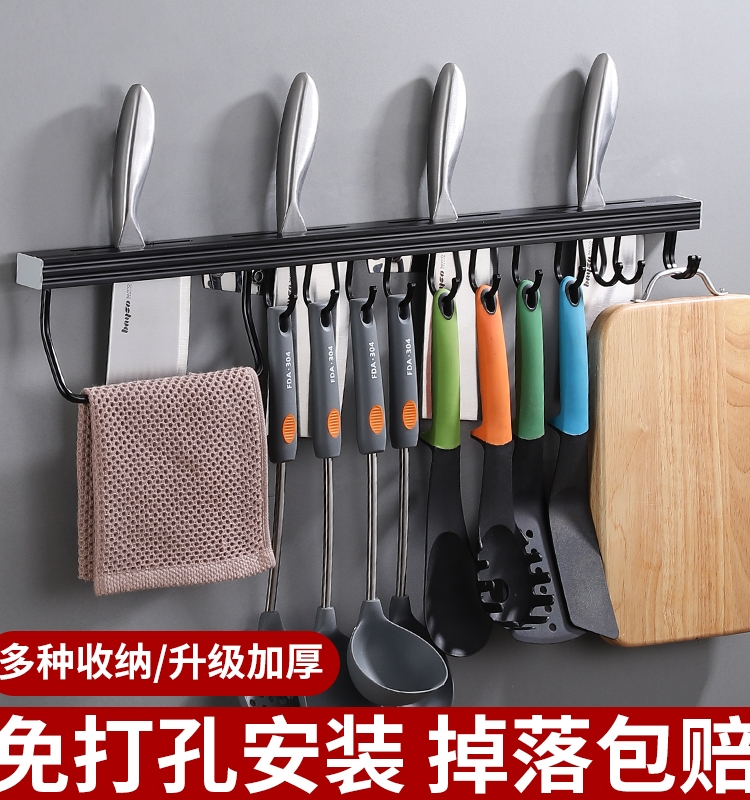 Space aluminum punch-free kitchen shelf wall-mounted household large knife holder storage hanger hook pendant supplies