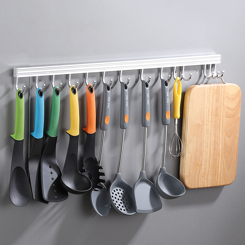 4 hooks 20cm matte silver (no punching) 6 hooks 30cm matte silver (no punching) 8 hooks 40cm matte silver (no punching) 10 hooks 50cm matte silver (no punching) 12 hooks 60cm matte silver (no punching) 14 hooks 70cm matte silver (no punching) 16 hooks 80cm matte silver (no punching holes) matte silver (40cm+6 hooks + hanging rod + 2 knife slots) matte silver (50cm +8 hooks + hanging rod + 3 knife slots) matte silver (60cm + 10 hooks + hanging rod + 3 knife slots) matte silver ( 70cm+12 hook +hook +4 knife slot) Matte silver (80cm+14 hook+hook+4 knife slot) 4 hook 20cm black (no punching) 6 hook 30cm black (no punching) 8 hook 40cm black (no punching) 10 hook 50cm black (no punching) 12 hook 60cm black (no punching) 14 hook 70cm black (no punching) 16 hook 80cm Black (no punching) black (40cm +6 hook + hanging rod + 2 knife slots) black (50cm +8 hooks + hanging rod + 3 knife slots) black (60cm + 10 hook + hanging rod + 3 knife slots) black (70cm + 12 hooks + hanging rod + 4 knife slots) black (80cm + 14 hooks + hanging rod + 4 knife slots)