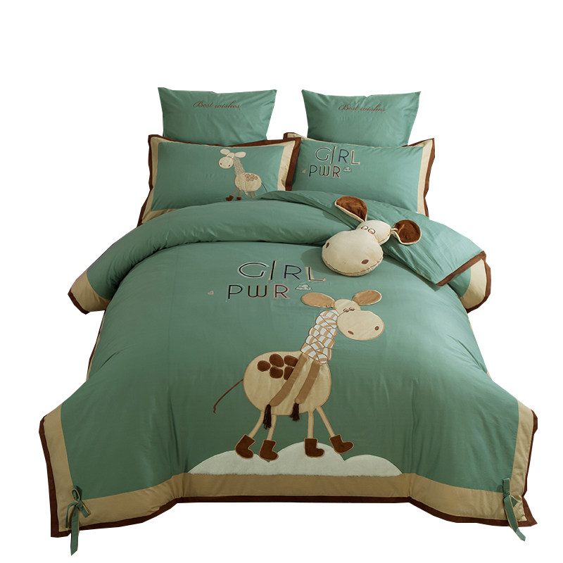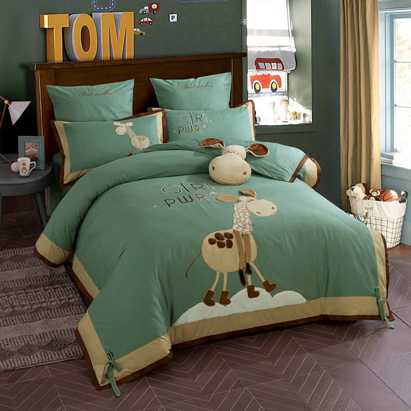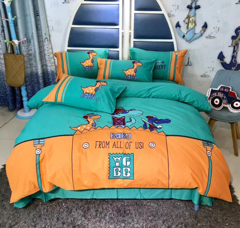 American boy cartoon embroidery four-piece set cotton four seasons pure cotton children's bedding three-piece set 1 2 1 35m bed