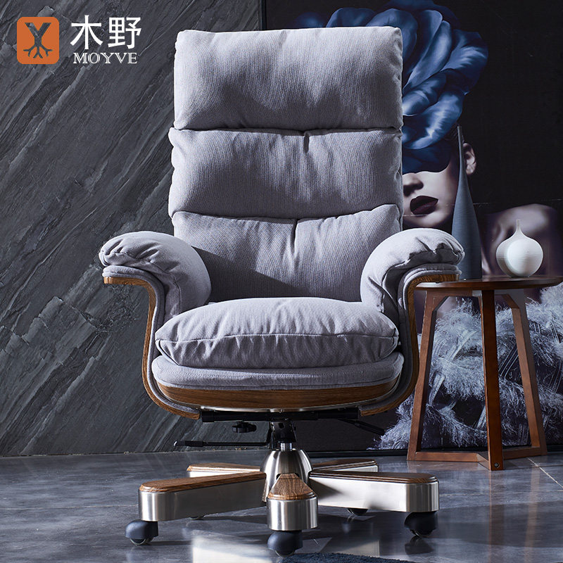 Wood wild boss chair Fabric home computer chair High-end comfortable office swivel chair High-back business president chair
