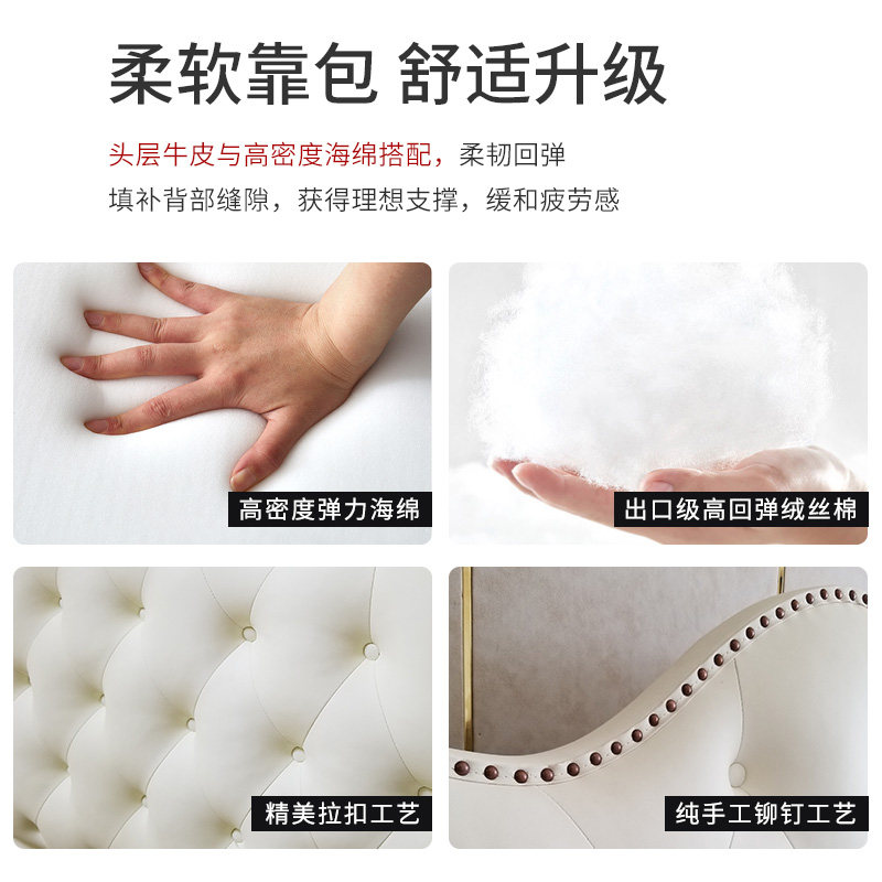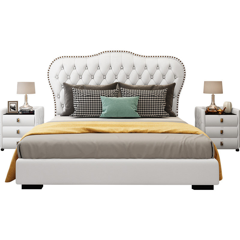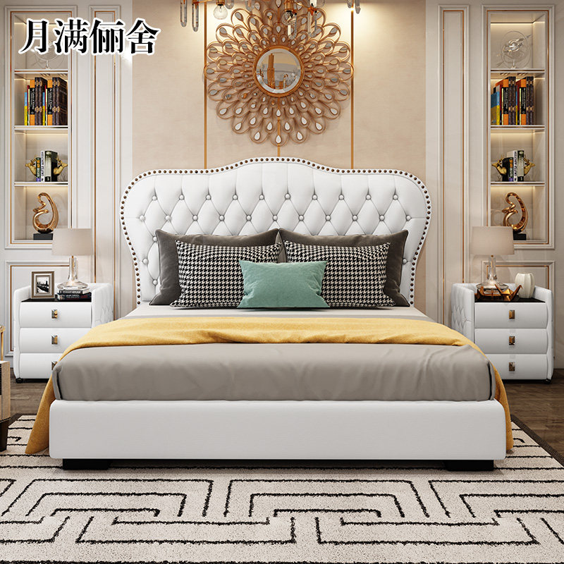 Light Extravagant Real Leather Bed Pull Buckle Modern Simple About Double Man Bed Atmospheric Bedroom Wedding Bed Small Family Type Master Bedroom Soft Bag Princess Bed