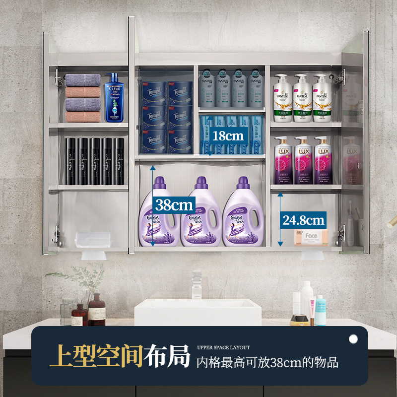 Heightened 90 cm stainless steel intelligent defogging mirror cabinet with beauty lamp mirror headlight dressing room mirror cabinet storage cabinet