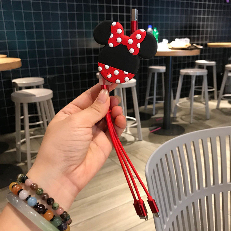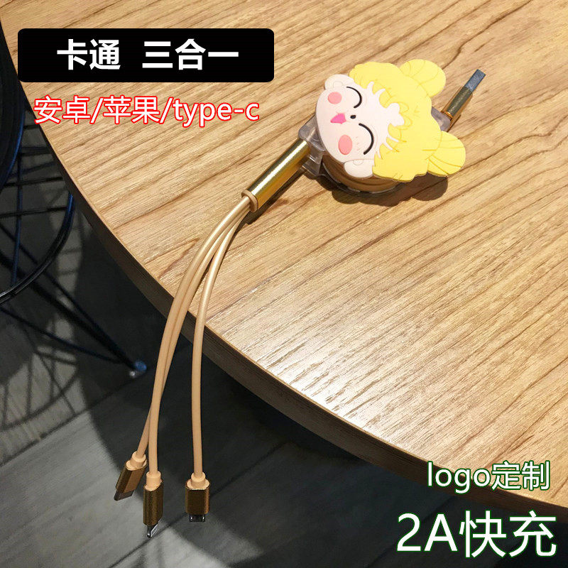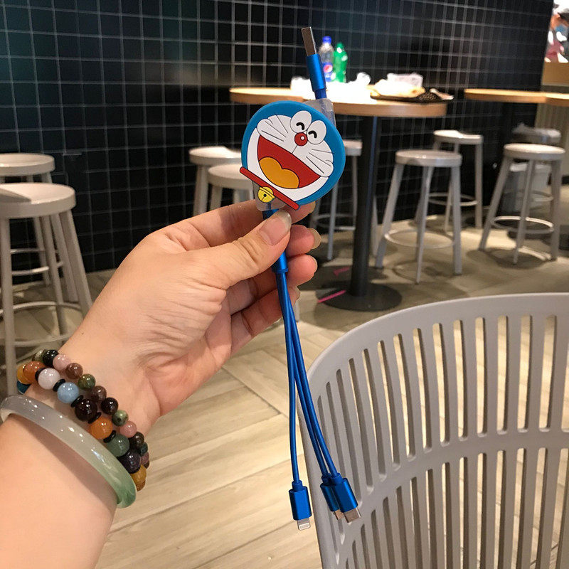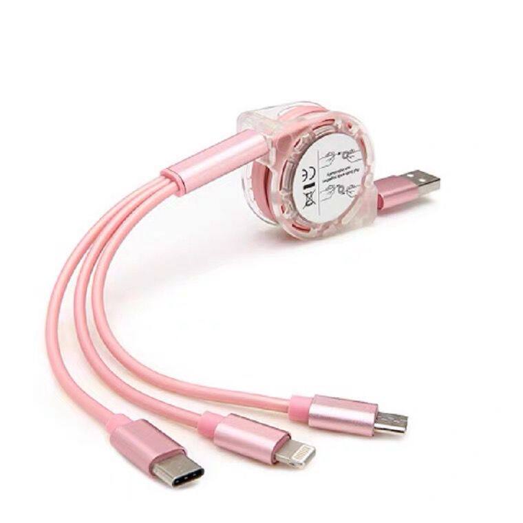 Cute One Drag Triple Data Line Multi-Head Telescopic Three-in-one Charger Suitable For Apple Android Universal Charging Fast